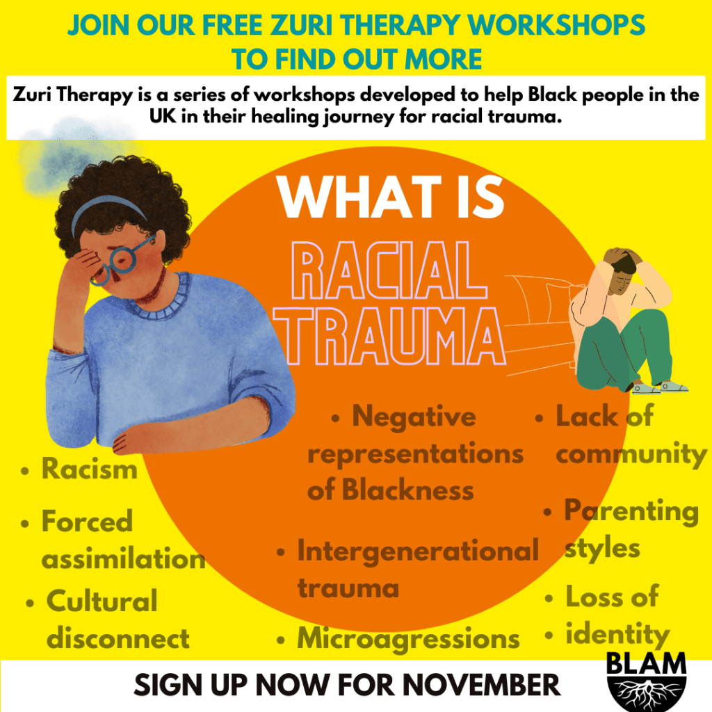 In a world where healing and self-discovery are paramount, BLAM UK presents Zuri Therapy, a groundbreaking initiative designed to address the specific needs of Black British individuals. We understand that the journey to recovery from racial trauma can be complex, which is why we’ve partnered with certified Black therapists to create a supportive and safe space for your growth and understanding.